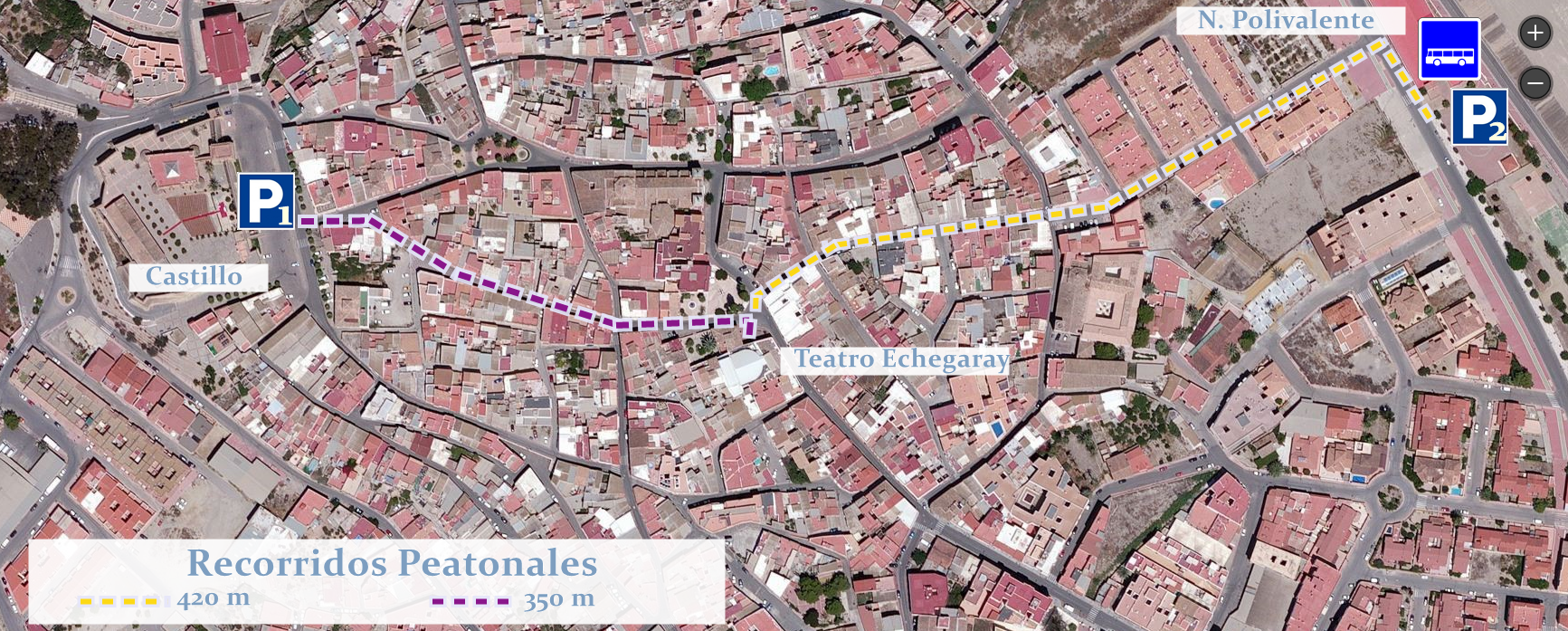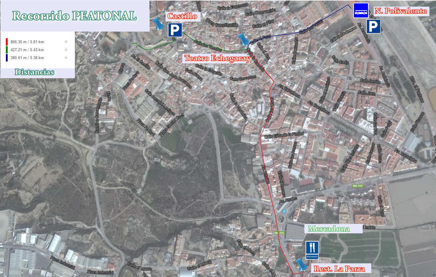 Consultar el anexo recorridos peatonales, para ir de los aparcamientos al Teatro Echegaray.